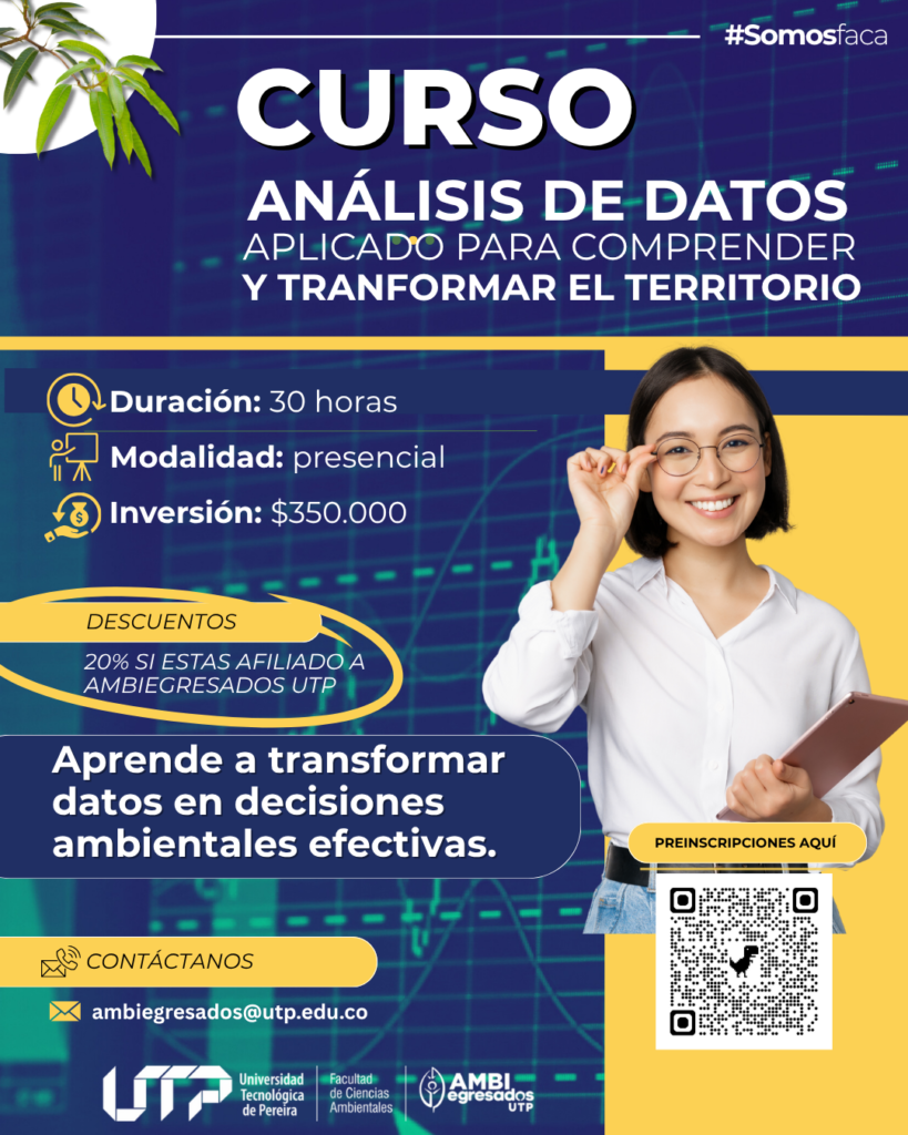 Egresados del programa de la Facultad de Ciencias Ambientales, profesionales del área ambiental y público en general interesado en adquirir competencias básicas en análisis de datos aplicados a la gestión ambiental.